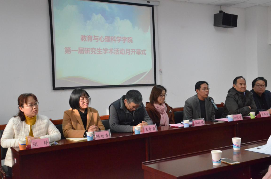 我院党委书记王希普宣布,教育与心理科学学院第一届研究生“学术活动月”正式开幕,并勉励每位研究生积极参加各项学术活动,做一名名副其实的研究生。