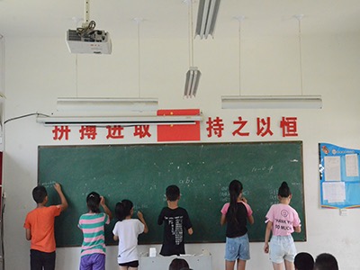 语言为民族之本,文字乃传承之魂。上午的课程,志愿者们首先开展的是一节语文课。课前,志愿者们积极备课,综合考虑学生的接受能力、理解能力、学习进度等多方面因素,经过反复商讨后确立最终教案。伴随上课铃响,志愿者准时进入教室,看着孩子们求知的眼神,主讲的志愿者背过身一笔一划在黑板上写出今天上课的内容:“同学们,大家把练习本拿出来,我们今天来学习新的知识……”在授课过程中,志愿者不间断地注意着孩子们的状态,不时和善地提醒同学们注意握笔姿势与眼笔距离。在下午的数学课上,为加深学生记忆,提升学生的课堂参与度,志愿者采取了课堂互动的教学方式:在基本授课结束后,主讲的志愿者在黑板上列出几道练习题,请同学们当场上台解答。在解题结束后,志愿者带领学生们一起订正答案,并就解题过程中同学们常出现的问题进行告诫与讲解。课程最后,志愿者向学生们布置了适量课后作业,以巩固今日学习效果。