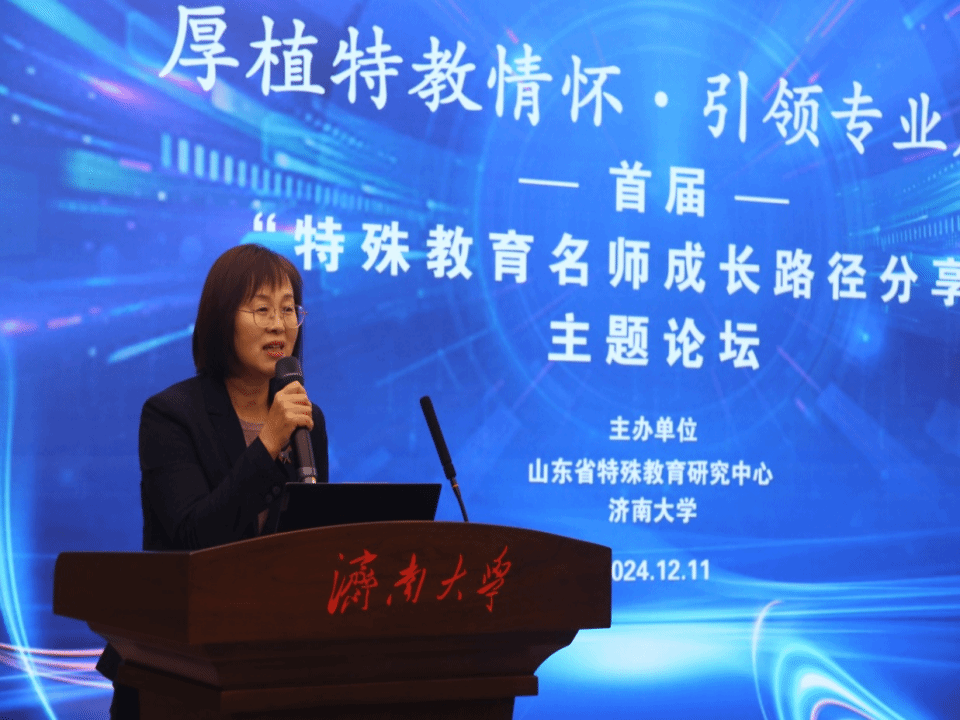 论坛开幕式上,济南大学教师工作部部长张晓霞高度评价了山东省特殊教育研究中心在推动特殊教育改革发展方面所做出的积极贡献。她指出,特殊教育关乎每一位特殊孩子的成长和发展,更承载着社会公平与正义的厚重使命。济南大学作为一所拥有深厚教育底蕴与强烈社会责任感的高等学府,始终将特殊教育视为教育事业不可或缺的一部分。近年来,济南大学积极响应国家关于加强特殊教育教师队伍建设的号召,不断优化特殊教育专业设置,致力于培养具有理想信念、道德情操、扎实学识和仁爱之心的特殊教育人才,成果斐然。