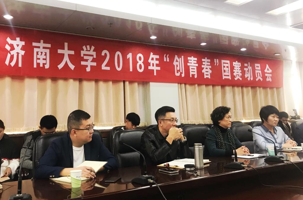 10月11日,济南大学2018年“创青春”国赛动员会在行政楼九楼会议室举行,学校党委副书记张硕秋、校团委书记孙菲菲、团委副书记胡春毅出席,我院党委副书记季竹君率领Abe视障儿童项目团队参加。