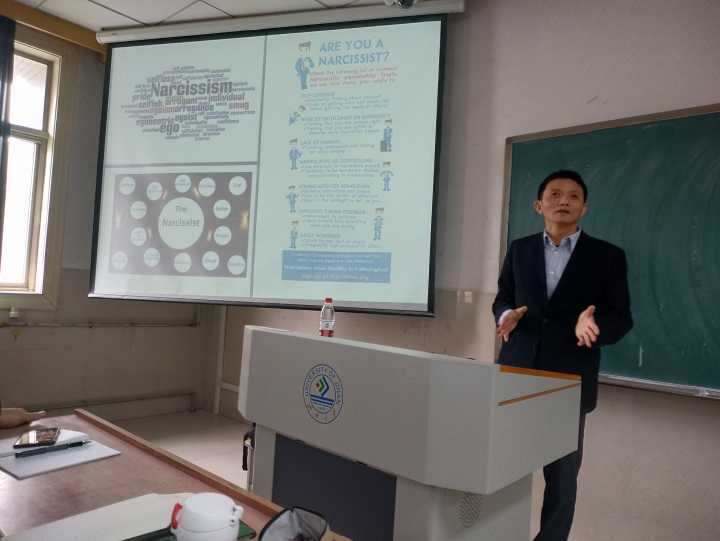 2019年3月29日,中国科学院心理研究所蔡华俭研究员莅临我院指导,并在10J508教室举办“中国人的自恋”的精彩讲座,讲座由林丰勋教授主持,学院的多位老师和学生参加了此次讲座。