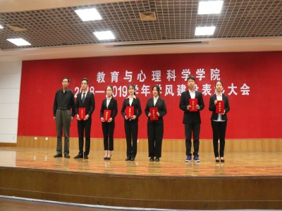 为了表彰先进,激励优秀生,带动潜力生,在全院内形成学习先优、赶超先优、争当先优的良好氛围,持续优化学风、院风,5月16日下午,教育与心理科学学院在第二学术报告厅召开2018-2019学年度学风建设表彰大会。学院党委书记王希普,院长杨昭宁,副院长张婷及学院教师代表、学生代表以及全体获奖人员出席本次大会。表彰大会由党委副书记、副院长季竹君主持。