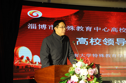淄博市特殊教育中心校长路荣喜致欢迎辞,他对此次活动的举行表示热烈祝贺。他表示,本次淄博市特殊教育中心高校教学实践基地的签约揭牌仪式的举行,充分体现了淄博市教育局、济南大学对淄博市特殊教育中心的关心和支持,期待双方以此为契机,优势互补、深度合作,共同致力于淄博市特殊教育事业。