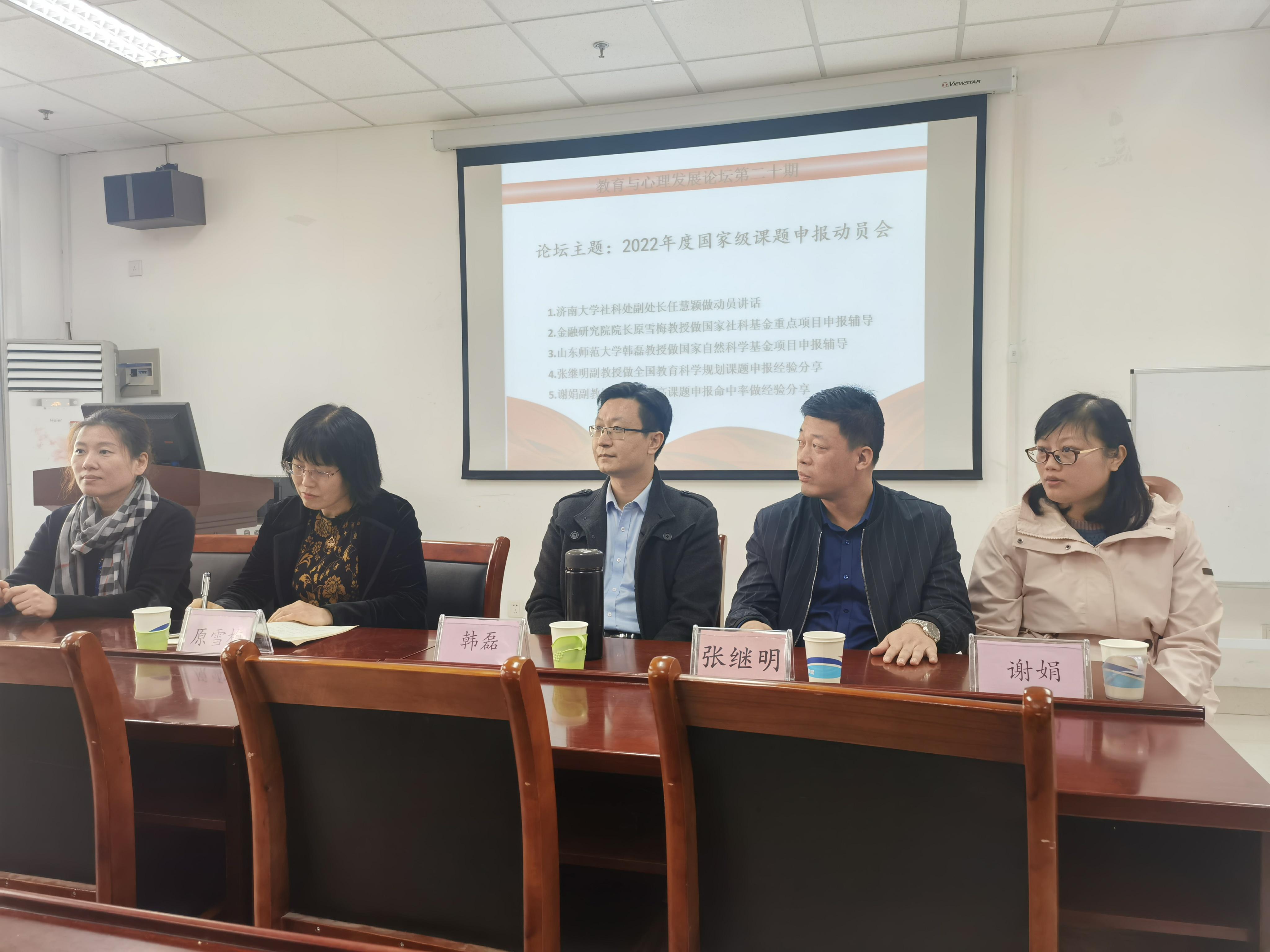 为促进教师科研能力和科研素养的提升,加强教师之间科研信息的沟通和交流,推进学院科研工作再上新台阶,10月19日,教育与心理科学学院开展第20期教育与心理发展论坛。论坛由陈功香副院长主持。济南大学商学院原雪梅教授、山东师范大学韩磊教授、社科处副处长任慧颖、高等教育研究院张继明副教授和教心学院谢娟副教授分享了自己的课题申报经验,教育与心理科学学院和高等教育研究院的教师参加了该论坛。