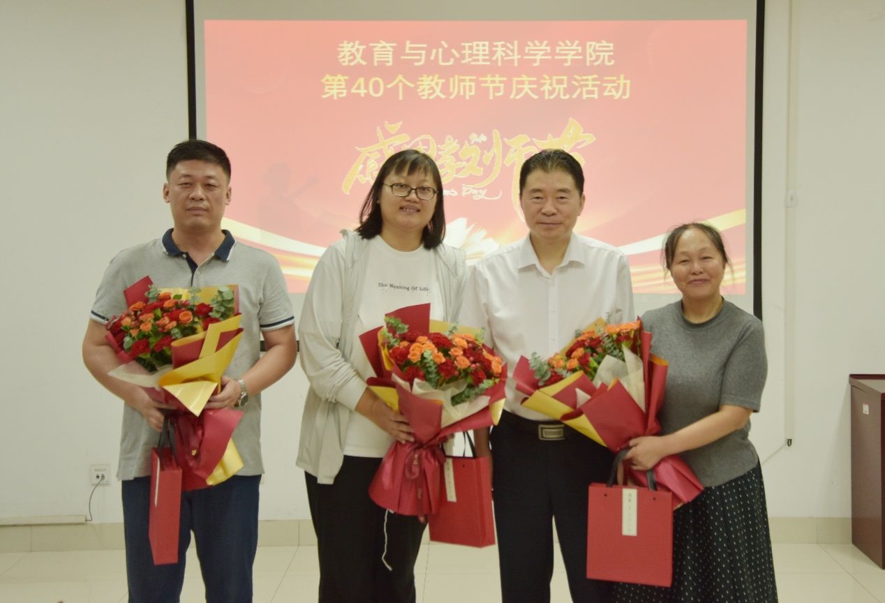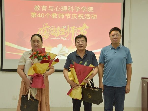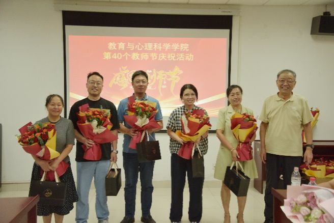 在这个特殊日子里,学院新入职教师为退休教师献花,献出去的是尊重和祝福,接收到的是新时代育人的使命和担当。之后,我院为2023至2024年荣获本科教学贡献奖、事业单位年度考核优秀奖、从教30年教师、校级优秀教师进行了表彰。