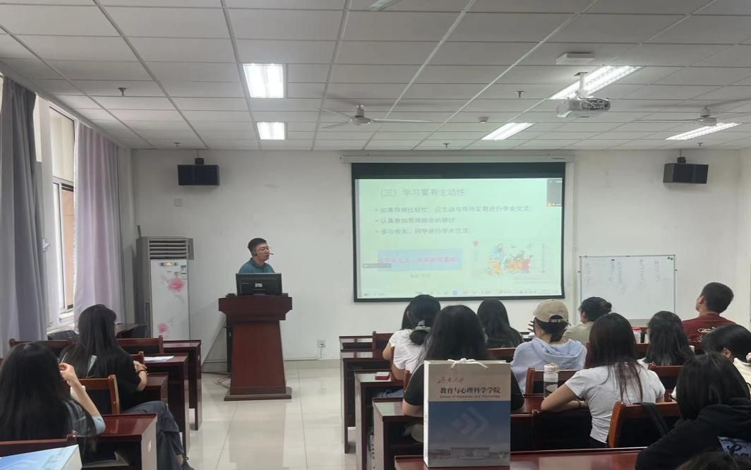 为深入学习贯彻习近平总书记关于新时代党的青年工作的重要思想,营造良好的学术氛围,培育积极的创新文化,扎实推进研究生培养工作得高质量发展,9月26日下午,教育与心理科学学院开展了2024级研究生新生入学教育活动。学院副院长杨鹏围绕学业和就业两个方面,与全体新生进行了交流。