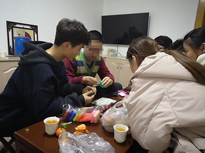 寒假结束,新学期伊始,志愿者们带着卷笔刀、彩笔等学习用品以及各色各样的水果来到特殊儿童小玮家并见到了小玮的奶奶。献上礼物的同时志愿者们殷切地询问着小玮新学期的学习状况和他刚过去不久的寒假生活。慰问过程中迟迟不见小伟的身影,听到奶奶说小玮还在学校时,志愿者们决定让小玮的奶奶休息一天,由他们来接小玮回家。在学校门口等待的小玮见到志愿者时便开始兴奋地挥手,回想起小玮成长中的点点滴滴,看着这个曾经的自闭症儿童由沉默不语到逐渐开朗再到如今将我们看做促膝谈心的家人,志愿者们深受感动。到家后,小玮奶奶端上了早已切好的水果。伴随着果香,志愿者们在午后的阳光中指导着小玮的作业,针对小玮学习中出现的薄弱项目进行着重辅导。指导完作业,小玮希望可以一起玩会儿游戏,当志愿者们表示同意时,小玮飞快地拿出了纸笔,邀请志愿者一起画画、折纸。冬日的暖阳逐渐西落,纸上小玮画的志愿者一行人也已然成型。这次雷锋日的特别活动也就此写下了一个温馨的句号。