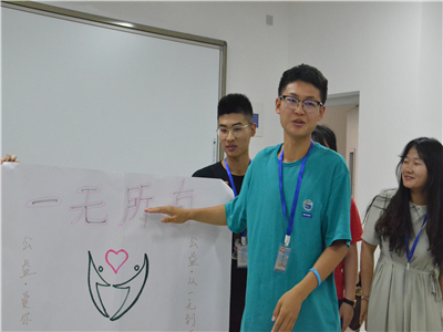 活动伊始,各高校志愿者打乱顺序重新组队,大家一起设计小组名称、口号、logo,这一过程过程使志愿者们对其他学校的志愿服务以及志愿形式有了更深入的了解,为之后更好的做好我院的志愿服务建立了良好的基础。分组讨论环节中,志愿者们针对去形式化、暑期志愿服务一天进行了探讨,每个志愿小组都有着自己看法和观点,都有着自己的特色。