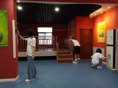 迎着朝阳,踏着晨光,“松柏之茂,携手并肩”社会实践团的队员们来到了鲁贤社区,开始了第一天的志愿服务。到达鲁贤社区居委会后,队员们与社区居委会管理者们进行了亲切友好的交谈。随后,队员们开始了活动准备,以小组为单位,分组拿劳动工具,由活动负责人带领志愿者们游览社区,明确小组负责区域。活动中,志愿者们主要对社区内的科技馆和图书馆进行了仔细地清扫。闷热的天气下,志愿者们辛勤劳动的身影构成了一道亮丽而又温馨的风景线。活动的最后,组长负责做好安全记录,对于活动中发生的事件做好记录,并及时反馈给居委会。