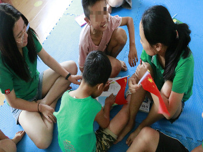 下午三点,实践团成员们带着准备好的国旗、国徽等物品来到星语培智中心。中心的教师们提前准备了音响,方便成员们播放国歌。虽然之前孩子们对国歌也有所接触,但是全部唱下来还有些困难,成员们带领这他们一句一句的学习国歌,并对声音洪亮、吐字清晰的孩子分发国旗。练习一个多小时后,孩子们挥舞着国旗,跟着伴奏唱响那庄严宏伟的国歌。接着,实践团成员们为孩子们介绍国旗上五颗星星的含义以及国徽是国家的徽章,代表着中华民族的意义。一天的活动,就在孩子们的歌声中结束,相信爱国精神将在孩子们的心中埋下种子,总有一天它会发芽长大。
