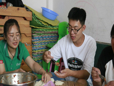 早上9点,实践团成员们来到集市,在带队的队长讲好注意事项后,按照分工开始采购食材,为制作午餐做准备。在孩子们上课的时候,实践团成员便在厨房中忙碌起来。调馅、擀面皮实践团的成员们相互帮助,为孩子们准备了一顿充满爱的水饺。看着孩子们品尝水饺时流露出真诚的笑容,实践团的成员们心里也感受到了满足感和成就感。这群孩子在生活中无法感受到父母在教育及价值观念上的正确引导和帮助,甚至在成长中缺少了父母情感上的关心和呵护,因此他们极易产生认识上的偏离和个性和心理发展的异常,一些人甚至会因此而走上犯罪道路。一顿热腾腾的午餐或许不能从根本上改变他们的生活,但是可以让他们感受到实践团带给他们的温暖,体会到社会对他们的关注。