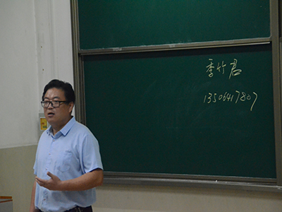 课程伊始,季老师先在黑板上写下自己的名字,黑板白字之间,三个大字笔走龙蛇,苍劲有力,赢得学生一片叫好声;以书法为切入点,季老师深入浅出地介绍了中华优秀传统文化,并对新生提出“学习”、“继承”、“发扬”中华文化的三个要求。随即,季老师又向同学们谈起一个人学识与气质的内在联系。“腹有诗书气自华”,一个人博学多才、饱读诗书,他所展现的气质必然非同凡响,季老师如此说道。一个半小时的脱稿演讲,季老师全程收放自如、条理清晰,牢牢把握着学生们的兴趣,一场演讲完毕,满座掌声雷鸣,所谓“腹有诗书气自华”,即是季老师本人的言传身教。