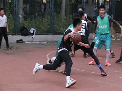灰蒙蒙的天空寒风渐起,却丝毫没有影响观众们的热情洋溢和运动员的赛场发挥,我院学子身着黑色球服,衣袂飞扬,身姿矫健,配合默契。比赛伊始,我方球员精神饱满,抢到球后迅速进攻,运球,忽而遇到对手拦截,我院学子试探性的虚掷,迅速的转身,巧妙躲避对手再将球反手勾回,然后稍一侧身,借力起跳,篮球便以完美的抛物线跃入篮筐。行云流水的动作无一不将我院队员绝佳的身体素质和应变能力展现的淋漓尽致。商院学子也不甘示弱,比分一度领先,两院队员你来我往,展开了一场激烈的拉锯战。短暂的休息时间里,球员们更是在进行战略的讨论,大家相互鼓劲,商定战术,力争在后半场的赛事中发挥更好的成绩。