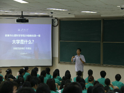 上午10时,新生入学教育活动以歌曲《相亲相爱一家人》为开场白拉开序幕,教育与心理科学学院党委书记牛瑞斌发表讲话,牛书记以“大学是什么”展开演讲,向20级新生们介绍了教育与心理科学学院开设专业及其发展方向、大学学习、生活的特点。牛书记又以“变就是不变,变就是永恒”为主题,鼓励大家在大学期间要做一个敢于创新、敢于改变自己的人,并且建议大家在学好自己专业的同时,一定要培养自己的专业素养,努力钻研专业知识,使自己全面发展。