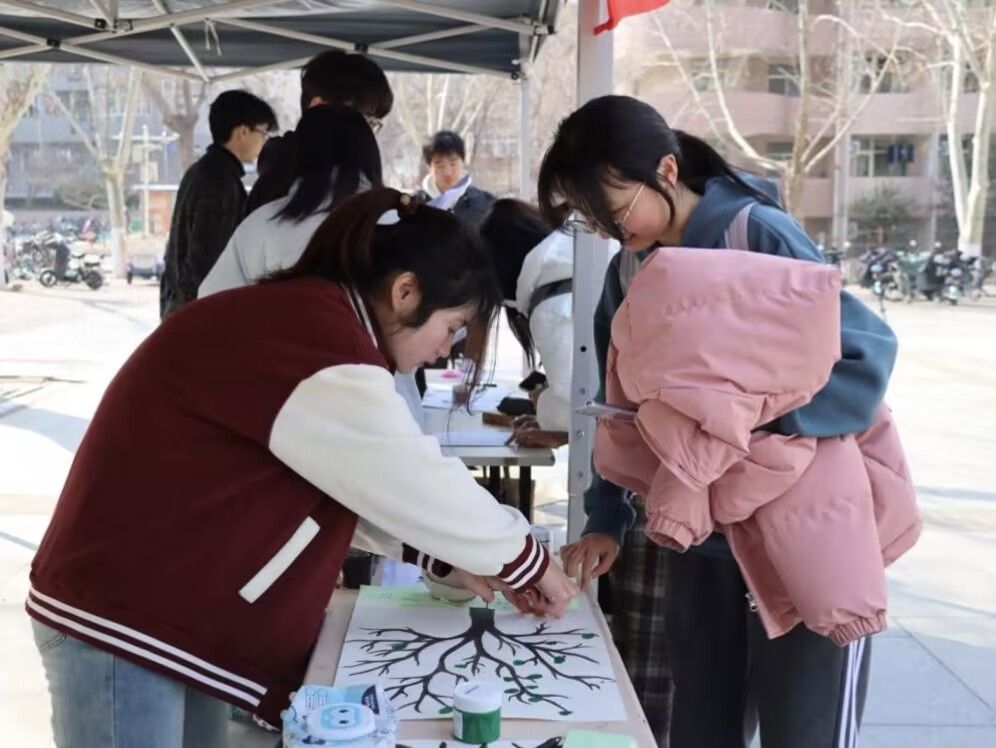 为深入贯彻学习习近平生态文明思想,增强大学生保护环境的意识,鼓励学生投入到生态文明建设的实践行动中,3月10日,教育与心理科学学院在八食堂广场举办植树节创意活动。