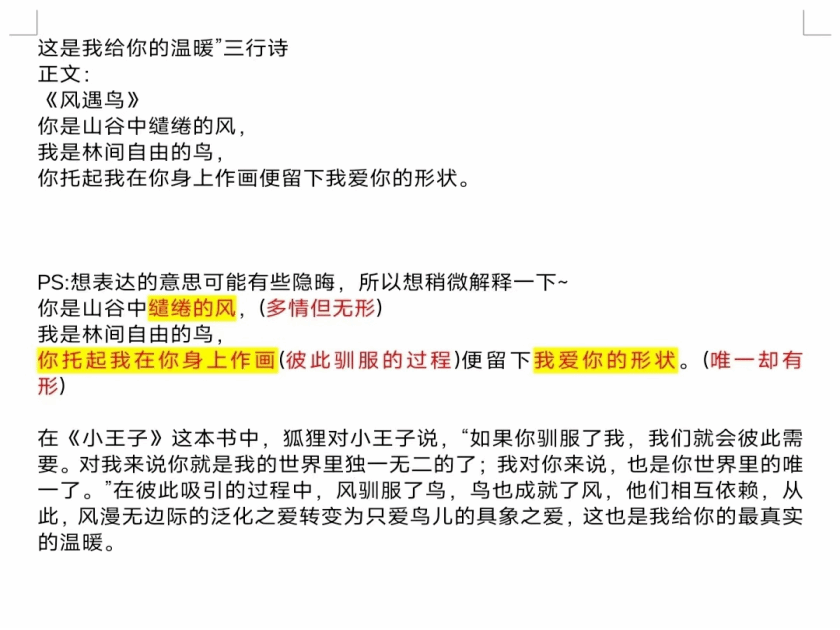 本次活动以线上活动方式的形式开展,同学们上传原创作品参评。作品言简意赅,情感浓缩,一瞬捕捉永恒请;韵律和谐,节奏明快,朗朗上口绕心间;意象丰富,寓意深远,言有尽而意无穷。同学们纷纷表示通过参加此次活动,不仅激发了自身的创意灵感,三行诗的形式也让其在有限的篇幅里展现独特的构思和表达,也感受到诗歌传递出的暖意,让人与人之间关系更加密切。
